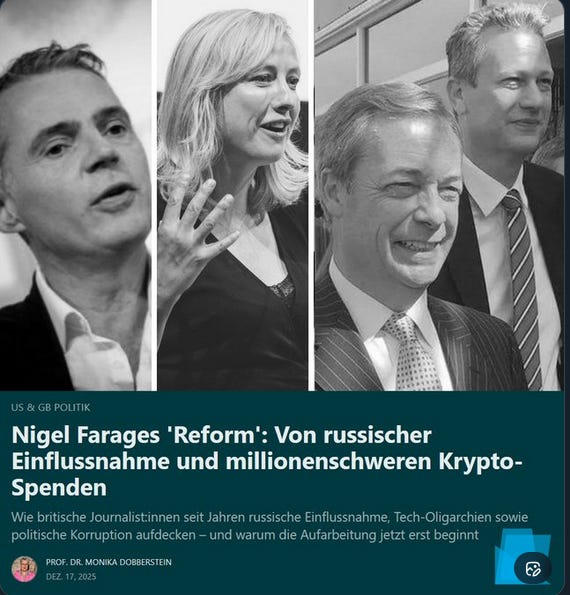 auf die britische Rechte wurde Einfluss sowohl aus dem Trump/Bannon/Epstein-Netzwerk ausgeübt, als auch von Putins Russland